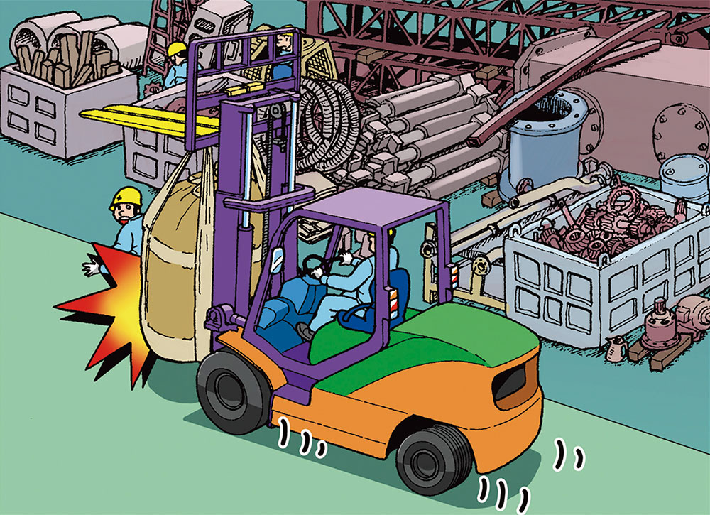 850kg)を吊り上げたフォークリフトが後方から接近しました。